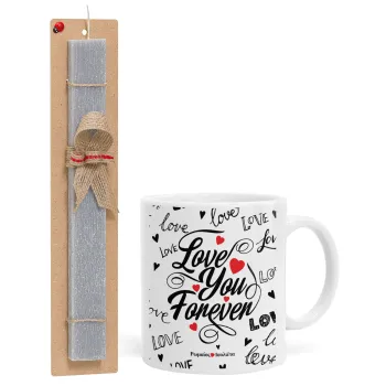 Love You Forever, Easter Set, Ceramic Cup (330ml) & Easter aromatic flat candle (30cm) (GRAY)