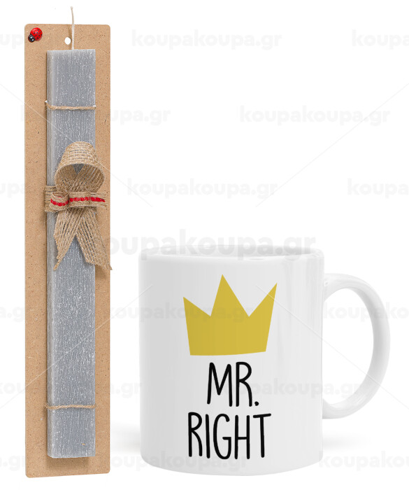 Mr right, Easter Set, Ceramic Cup (330ml) & Easter aromatic flat candle (30cm) (GRAY)