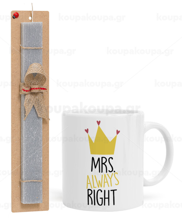 Mrs "Always" right, Easter Set, Ceramic Cup (330ml) & Easter aromatic flat candle (30cm) (GRAY)