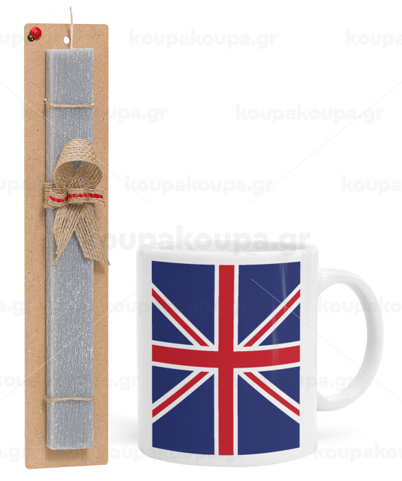 UK Flag, Easter Set, Ceramic Cup (330ml) & Easter aromatic flat candle (30cm) (GRAY)
