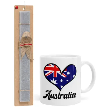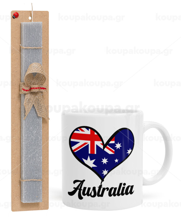 Australia flag, Easter Set, Ceramic Cup (330ml) & Easter aromatic flat candle (30cm) (GRAY)