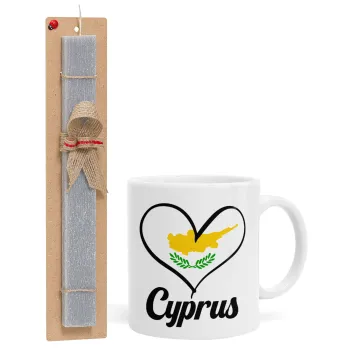 Cyprus flag, Easter Set, Ceramic Cup (330ml) & Easter aromatic flat candle (30cm) (GRAY)