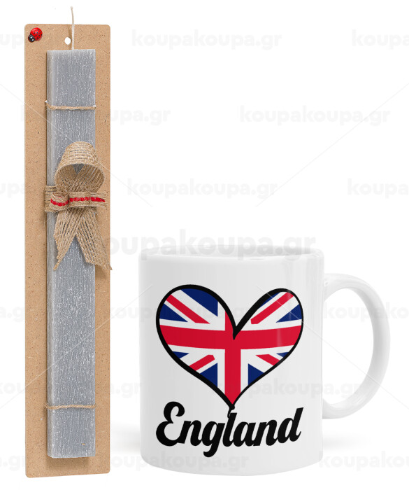England flag, Easter Set, Ceramic Cup (330ml) & Easter aromatic flat candle (30cm) (GRAY)