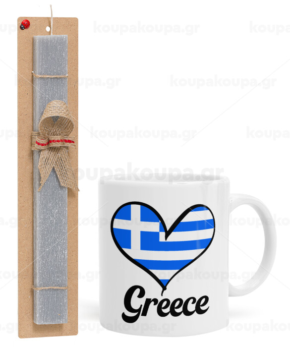 Greece flag, Easter Set, Ceramic Cup (330ml) & Easter aromatic flat candle (30cm) (GRAY)