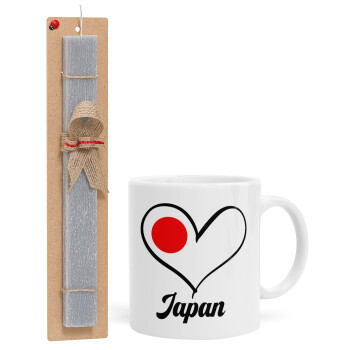 Japan flag, Easter Set, Ceramic Cup (330ml) & Easter aromatic flat candle (30cm) (GRAY)