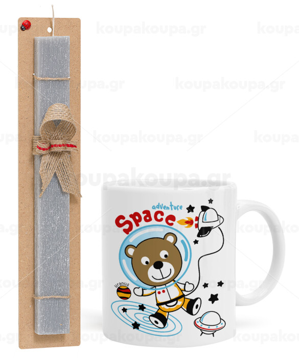 Kids Space, Easter Set, Ceramic Cup (330ml) & Easter aromatic flat candle (30cm) (GRAY)