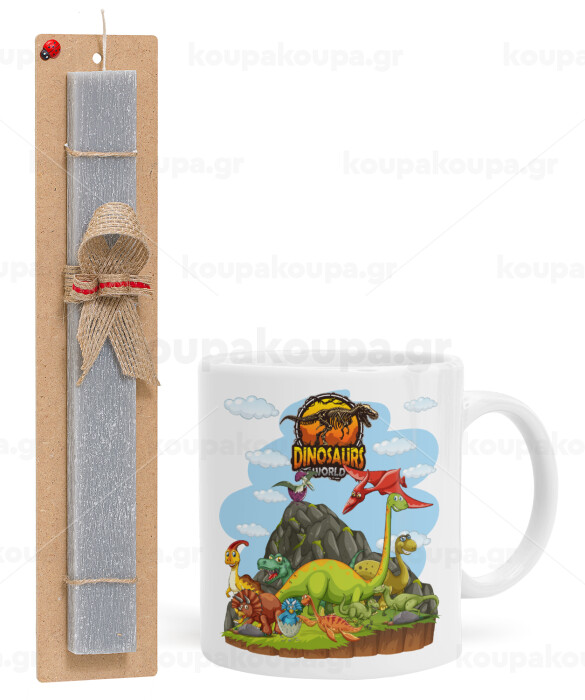 Dinosaur's world, Easter Set, Ceramic Cup (330ml) & Easter aromatic flat candle (30cm) (GRAY)