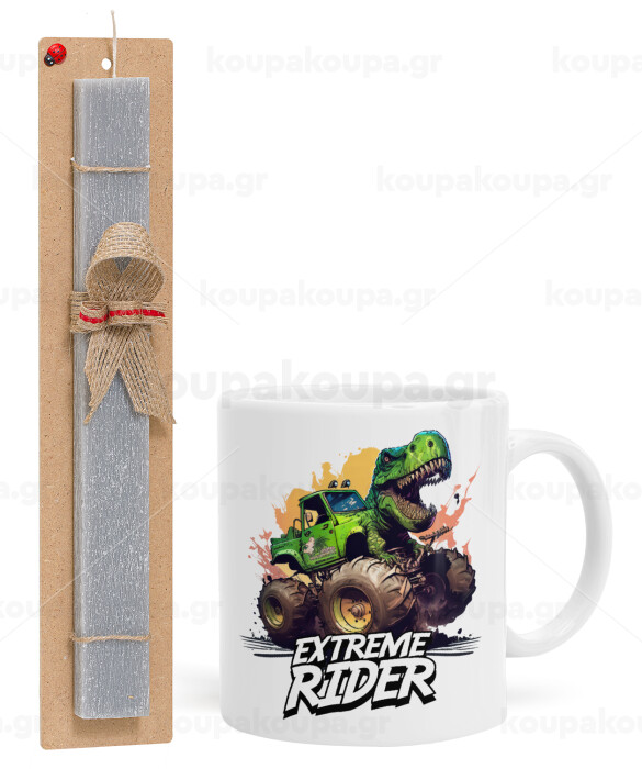 Extreme rider Dyno, Easter Set, Ceramic Cup (330ml) & Easter aromatic flat candle (30cm) (GRAY)