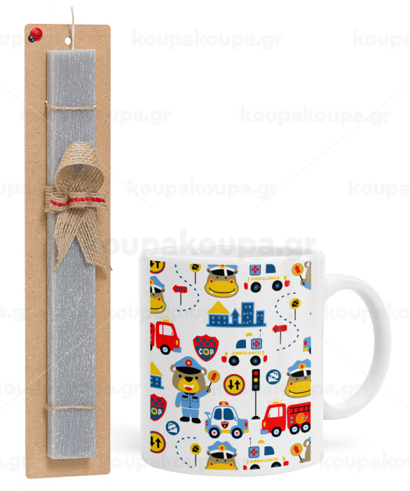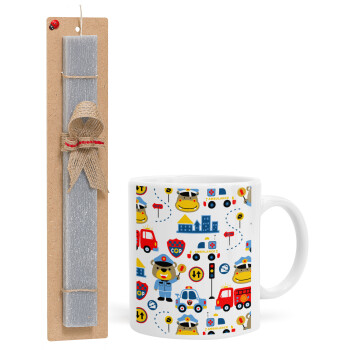 Rescue team cartoon, Easter Set, Ceramic Cup (330ml) & Easter aromatic flat candle (30cm) (GRAY)