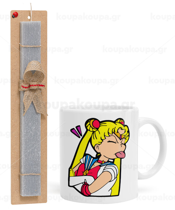 Sailor Moon, Easter Set, Ceramic Cup (330ml) & Easter aromatic flat candle (30cm) (GRAY)