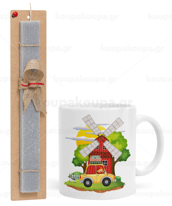 Toy car, Easter Set, Ceramic Cup (330ml) & Easter aromatic flat candle (30cm) (GRAY)