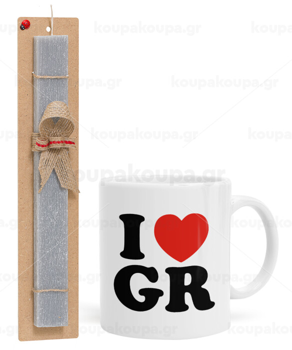 I Love GR, Easter Set, Ceramic Cup (330ml) & Easter aromatic flat candle (30cm) (GRAY)