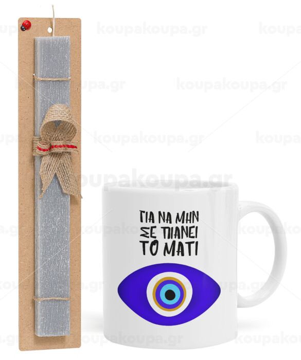 Για να μην σε πιάνει το μάτι, Easter Set, Ceramic Cup (330ml) & Easter aromatic flat candle (30cm) (GRAY)