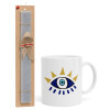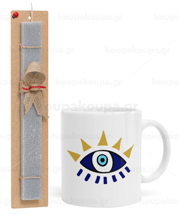 blue evil eye, Easter Set, Ceramic Cup (330ml) & Easter aromatic flat candle (30cm) (GRAY)