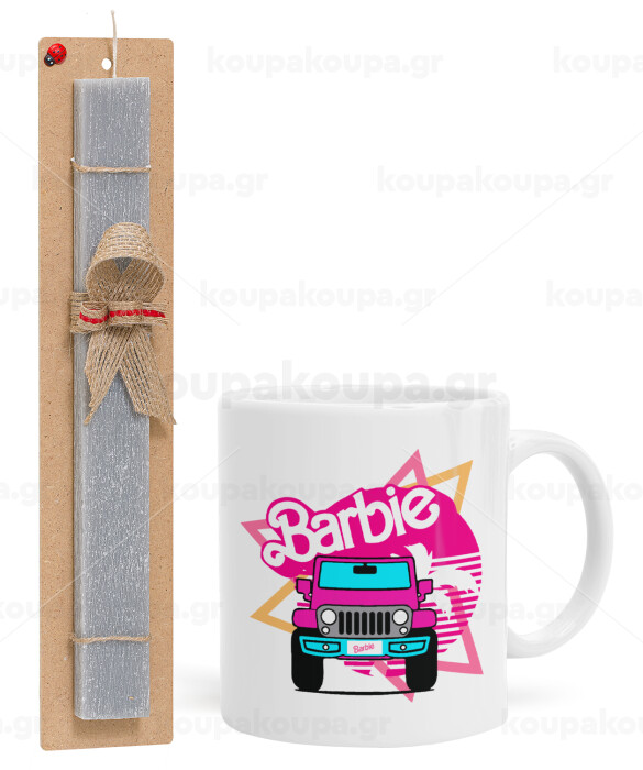 Barbie car, Easter Set, Ceramic Cup (330ml) & Easter aromatic flat candle (30cm) (GRAY)