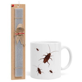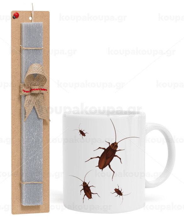 Blattodea, Easter Set, Ceramic Cup (330ml) & Easter aromatic flat candle (30cm) (GRAY)