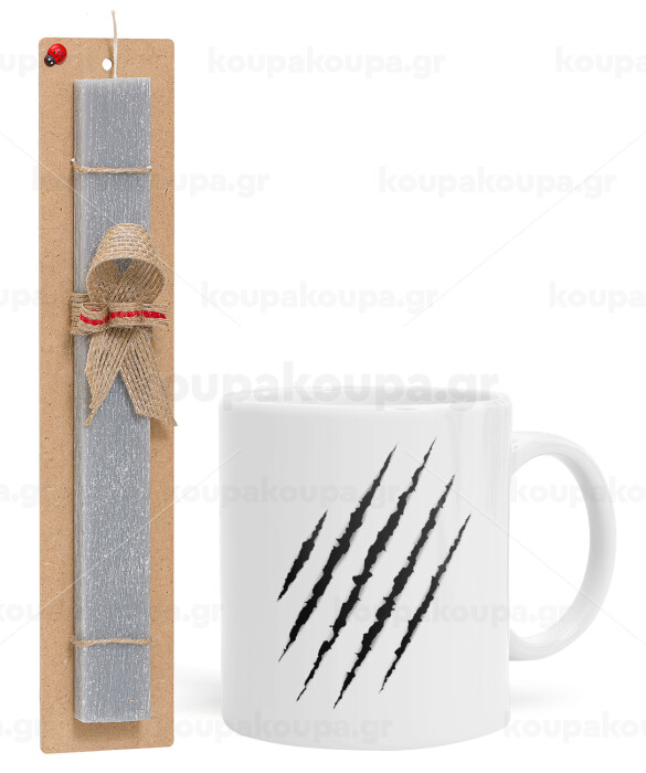 Claw scratch, Easter Set, Ceramic Cup (330ml) & Easter aromatic flat candle (30cm) (GRAY)
