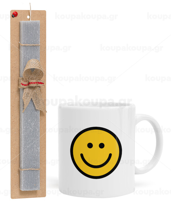 Smile classic, Easter Set, Ceramic Cup (330ml) & Easter aromatic flat candle (30cm) (GRAY)