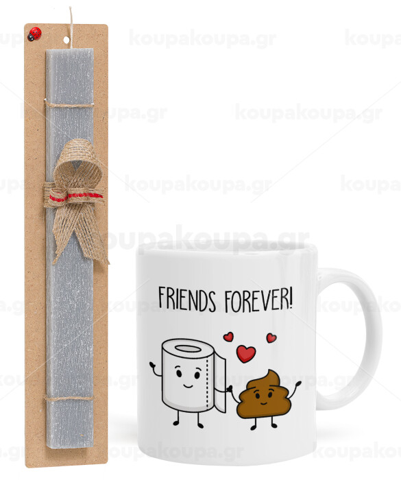 Friends forever, Easter Set, Ceramic Cup (330ml) & Easter aromatic flat candle (30cm) (GRAY)