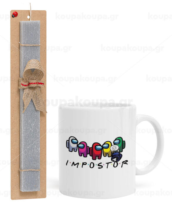 Among US impostor, Easter Set, Ceramic Cup (330ml) & Easter aromatic flat candle (30cm) (GRAY)