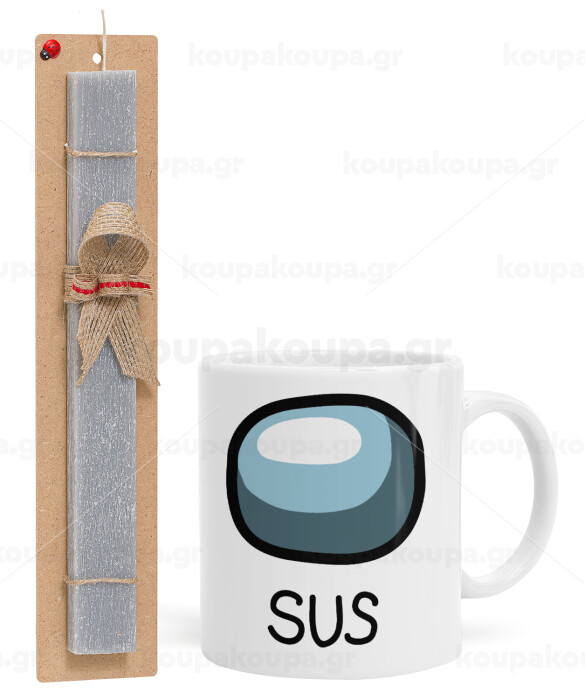 Among US SUS!!!, Easter Set, Ceramic Cup (330ml) & Easter aromatic flat candle (30cm) (GRAY)