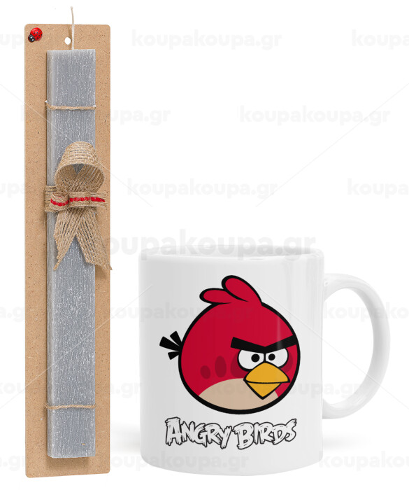 Angry birds Terence, Easter Set, Ceramic Cup (330ml) & Easter aromatic flat candle (30cm) (GRAY)