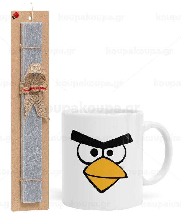 Angry birds eyes, Easter Set, Ceramic Cup (330ml) & Easter aromatic flat candle (30cm) (GRAY)