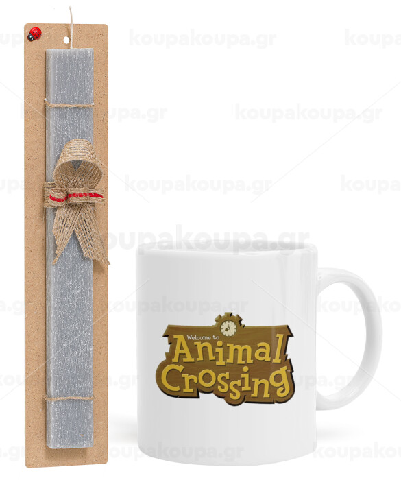 Animal Crossing, Easter Set, Ceramic Cup (330ml) & Easter aromatic flat candle (30cm) (GRAY)