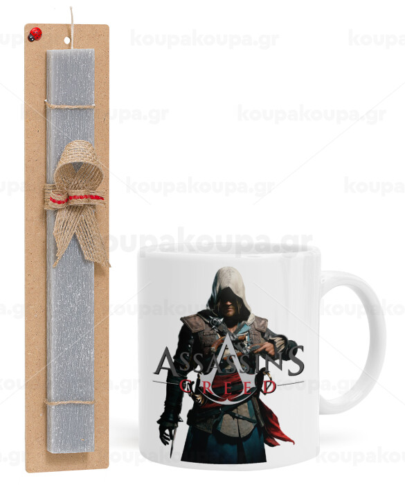 Assassin's Creed, Easter Set, Ceramic Cup (330ml) & Easter aromatic flat candle (30cm) (GRAY)