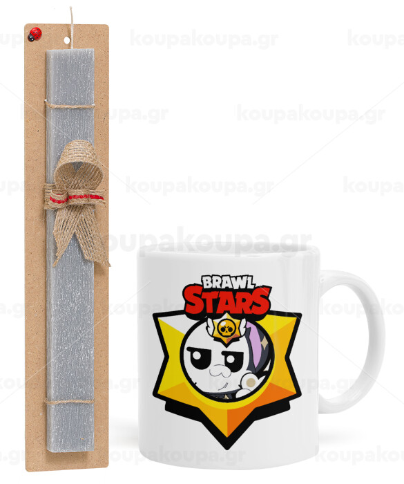 Brawl Stars Kit, Easter Set, Ceramic Cup (330ml) & Easter aromatic flat candle (30cm) (GRAY)