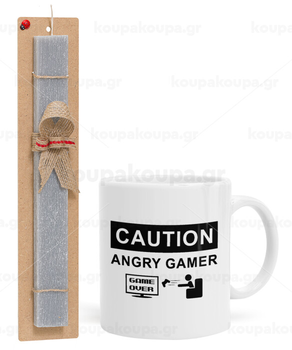 Caution, angry gamer!, Easter Set, Ceramic Cup (330ml) & Easter aromatic flat candle (30cm) (GRAY)