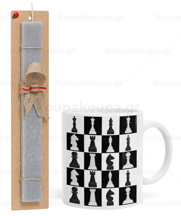 Chess set, Easter Set, Ceramic Cup (330ml) & Easter aromatic flat candle (30cm) (GRAY)