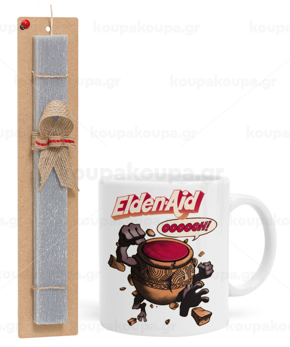 Elden-Aid, Elden Ring inspired , Easter Set, Ceramic Cup (330ml) & Easter aromatic flat candle (30cm) (GRAY)