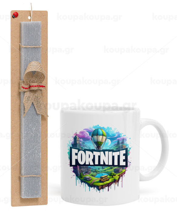 Fortnite land, Easter Set, Ceramic Cup (330ml) & Easter aromatic flat candle (30cm) (GRAY)