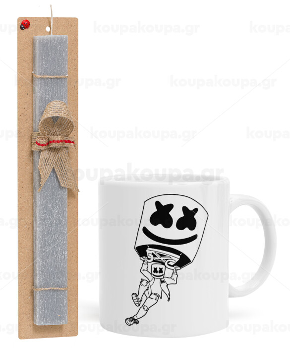 Fortnite Marshmello, Easter Set, Ceramic Cup (330ml) & Easter aromatic flat candle (30cm) (GRAY)