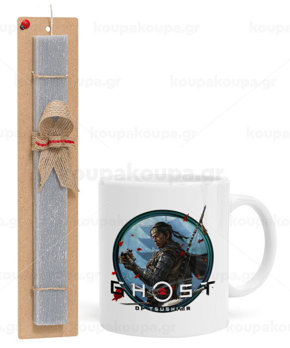 Ghost of Tsushima, Easter Set, Ceramic Cup (330ml) & Easter aromatic flat candle (30cm) (GRAY)