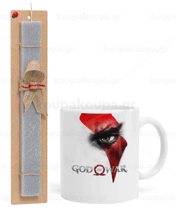 God of war Stratos, Easter Set, Ceramic Cup (330ml) & Easter aromatic flat candle (30cm) (GRAY)
