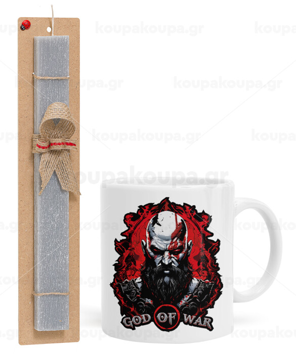 God of war, Easter Set, Ceramic Cup (330ml) & Easter aromatic flat candle (30cm) (GRAY)