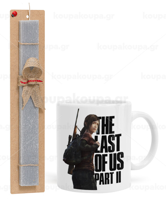 Last of us, Ellie, Easter Set, Ceramic Cup (330ml) & Easter aromatic flat candle (30cm) (GRAY)
