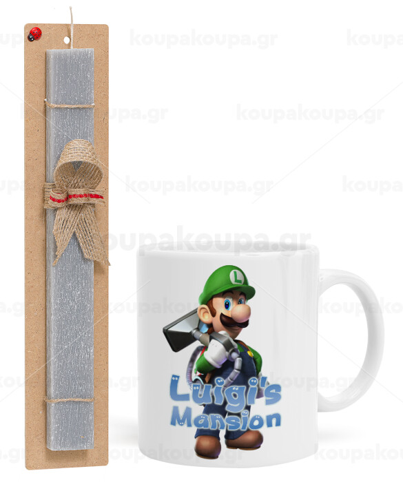 Luigi's Mansion, Easter Set, Ceramic Cup (330ml) & Easter aromatic flat candle (30cm) (GRAY)