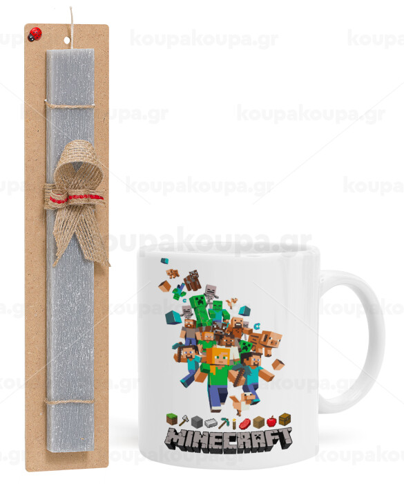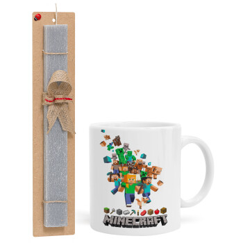 Minecraft adventure, Easter Set, Ceramic Cup (330ml) & Easter aromatic flat candle (30cm) (GRAY)