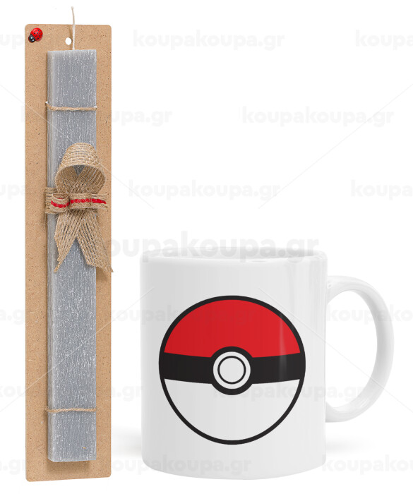 Pokemon ball, Easter Set, Ceramic Cup (330ml) & Easter aromatic flat candle (30cm) (GRAY)