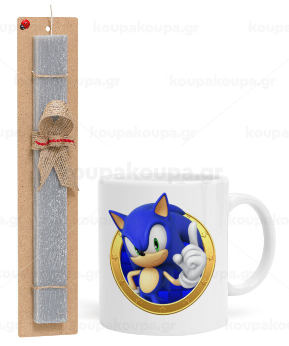 Sonic the hedgehog, Easter Set, Ceramic Cup (330ml) & Easter aromatic flat candle (30cm) (GRAY)
