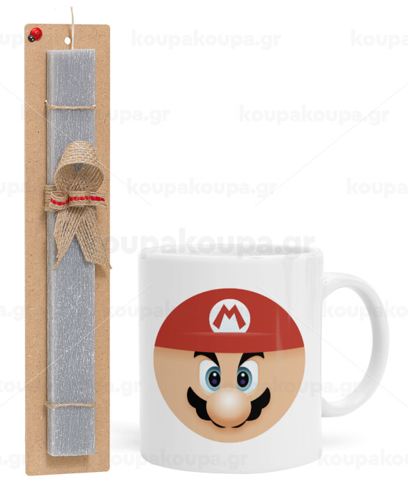 Super mario flat, Easter Set, Ceramic Cup (330ml) & Easter aromatic flat candle (30cm) (GRAY)