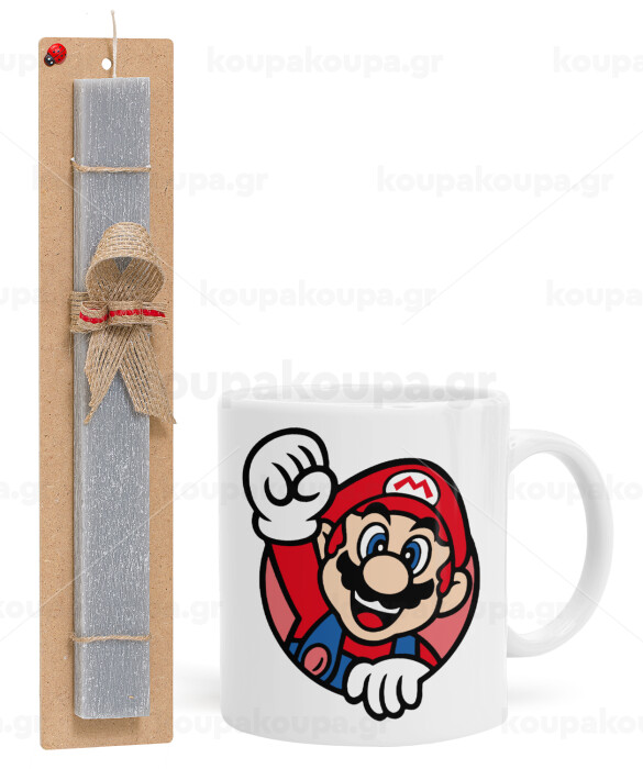 Super mario win, Easter Set, Ceramic Cup (330ml) & Easter aromatic flat candle (30cm) (GRAY)