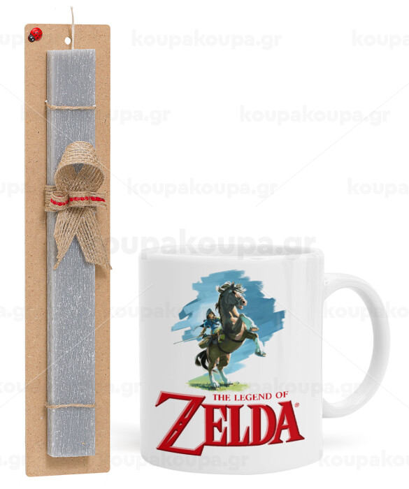 Zelda, Easter Set, Ceramic Cup (330ml) & Easter aromatic flat candle (30cm) (GRAY)