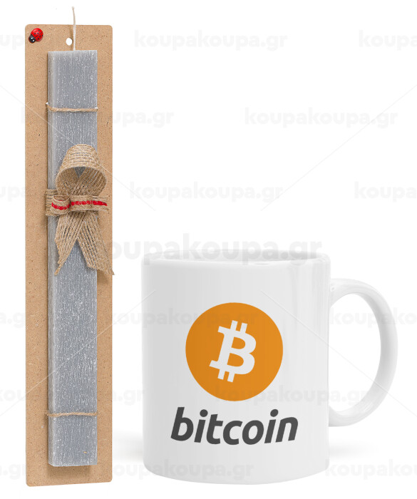 Bitcoin, Easter Set, Ceramic Cup (330ml) & Easter aromatic flat candle (30cm) (GRAY)