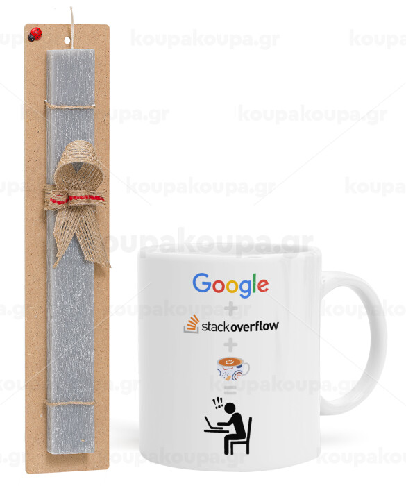 Google + Stack overflow + Coffee, Easter Set, Ceramic Cup (330ml) & Easter aromatic flat candle (30cm) (GRAY)