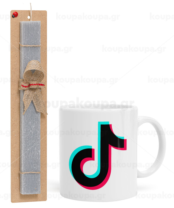 tik tok, Easter Set, Ceramic Cup (330ml) & Easter aromatic flat candle (30cm) (GRAY)