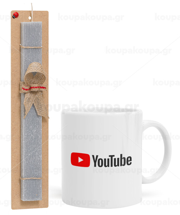 Youtube, Easter Set, Ceramic Cup (330ml) & Easter aromatic flat candle (30cm) (GRAY)